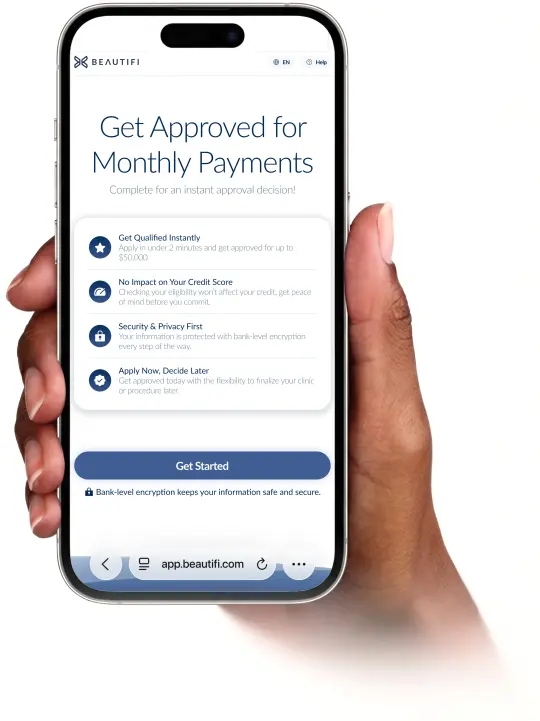 Applying also does not impact your credit score. One of the core benefits of Beautifi’s platform is that you can check available rates and options without worrying about hurting your credit. That means you can explore your financing choices, compare monthly payments, and decide if it’s right for you with total peace of mind.